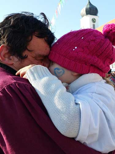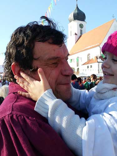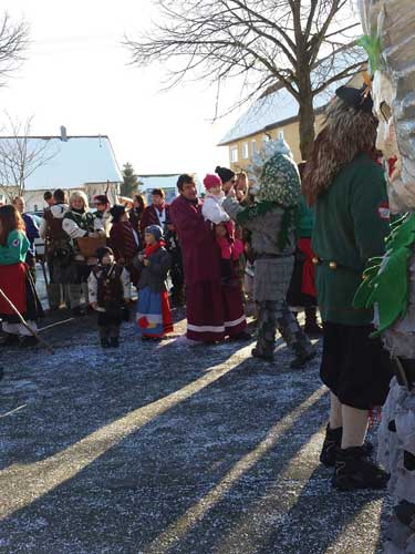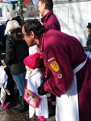 Hohenstadt auf der rauen Alb. Der Umzug bei den Pfingstlümmeln ist angesagt und herrlichstes Wetter. Erstmals läuft die kleine Janka mit und sie war ganz begeistert.